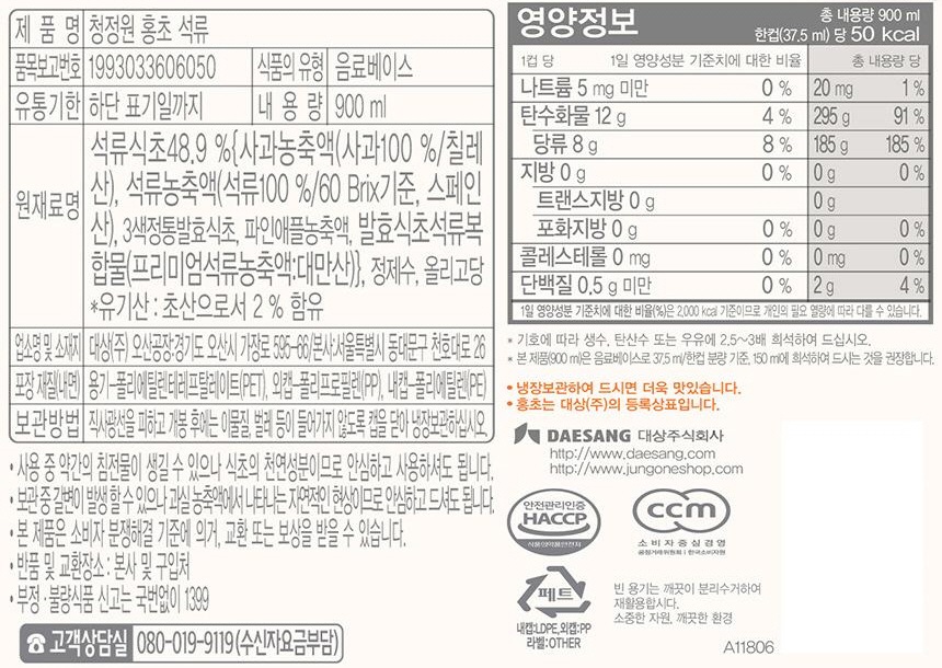 ¾Æ½ÅÁ÷¿øÀü¿ë] ûÁ¤¿ø È«ÃÊ ¼®·ù 900ml